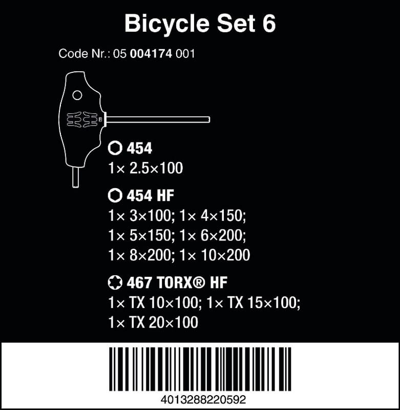 ZESTAW WKRĘTAKÓW T HEX I TORX BICYCLE SET 6, 10 CZĘŚĆ WERA W05004174001