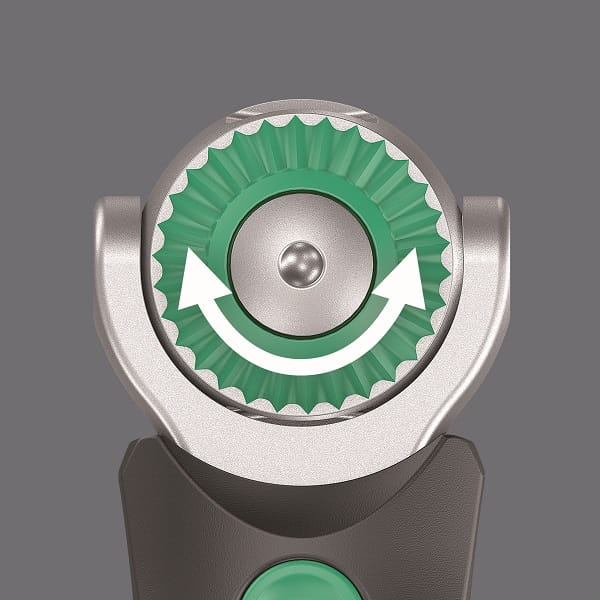Grzechotka dwukierunkowa drobnozębna z 72 zębami i niewielkim kątem powrotu zapadki wynoszącym zaledwie 5°