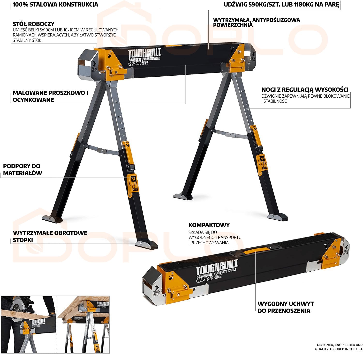 Cena dotyczy zestawu 2 sztuk kozłów ToughBuilt TB-C700-2. Produkt dostępny od ręki w sklepie Doplo.pl – gwarancja szybkiej wysyłki i profesjonalnej obsługi!