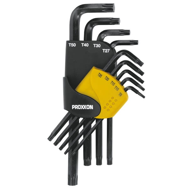 Zestaw profesjonalnych kluczy imbusowych PROXXON do śrub TX, 9-częściowy.