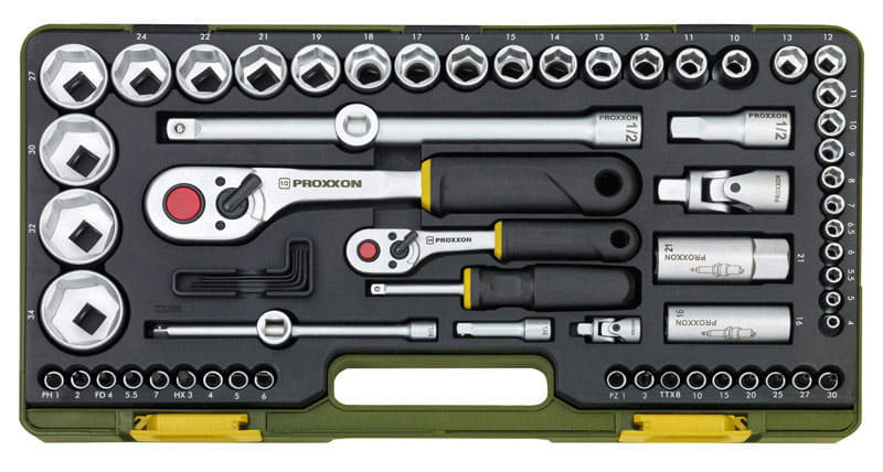 Zestaw kluczy nasadowych 1/2 i 1/4 cala 65 elementów PROXXON 23286