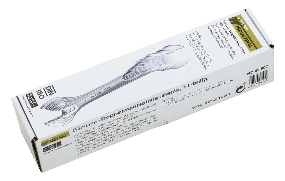 PROXXON SlimLine, to idealne klucze dla każdego warsztatu. Wykonane ze stali CrV, precyzyjne (bez ostrych krawędzi i kantów), hartowane i wciąż ulepszane. Z czytelnym oznaczeniem każdego klucza.